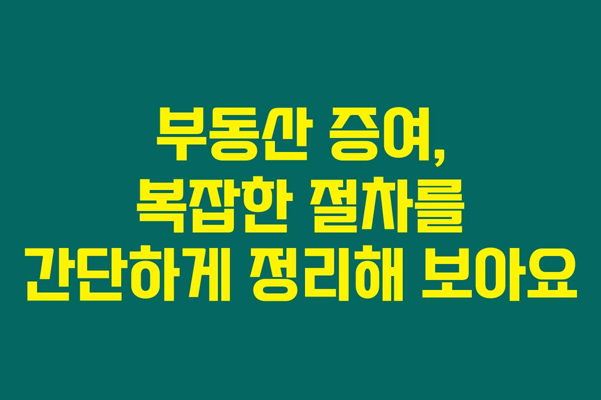 부동산 증여를 위한 절차는 다음과 같이 이루어져요. 제가 직접 리서치한 바로는 단계별로 확인해보시기 바랍니다.