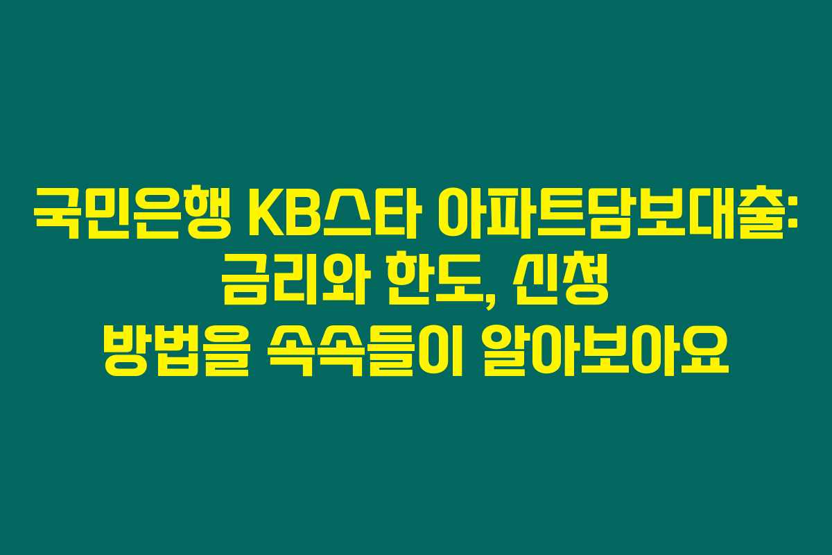 제가 직접 알아본 바로는, 국민은행의 KB스타 아파트담보대출(구입자금)은 매우 유용한 상품이랍니다. 아파트 구입 자금을 좀 더 효율적이고 부담 없이 조달할 수 있도록 도와주는 이 제품은 장기적인 상환 기간과 함께 최적의 조건을 제공합니다. 아래를 읽어보시면, 이 대출 상품의 금리, 한도, 신청 방법에 대해 자세히 안내드릴게요.
