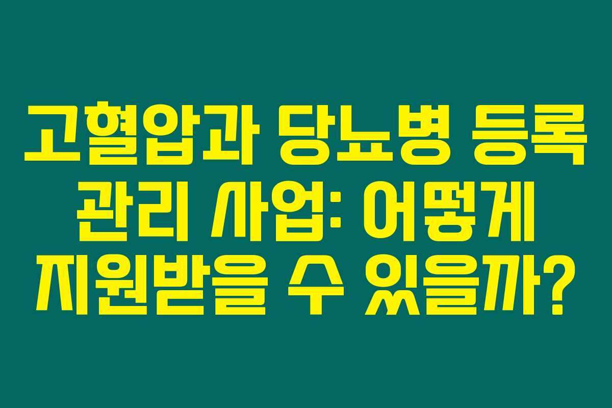 제가 직접 경험해본 결과로는, 고혈압과 당뇨병으로 어려움을 겪고 있는 많은 분들께 유용한 정보가 여러분을 기다리고 있어요. 정부에서는 이러한 질병을 앓고 있는 분들을 위해 치료비 지원 및 다양한 교육 서비스를 제공하고 있습니다. 최신 정보를 통해 지원 받을 수 있는 방법을 자세히 알려드릴게요. 아래를 읽어보시면 신청 방법과 대상에 대해 더 많이 알 수 있답니다.