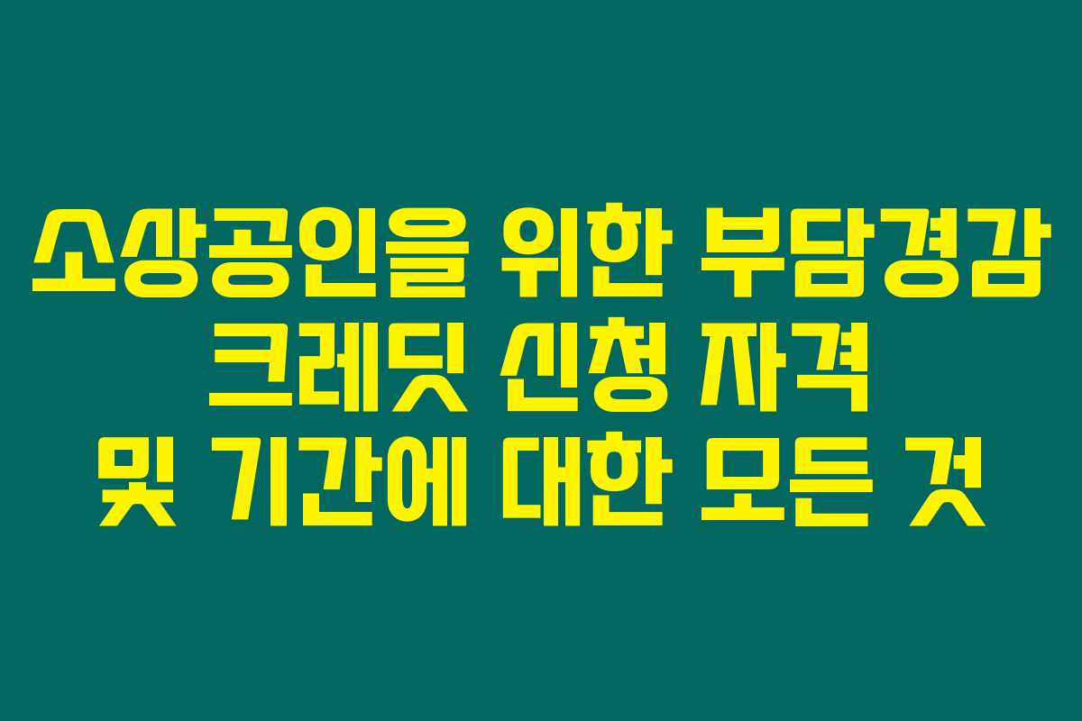 부담경감 크레딧은 소상공인들이 금융 부담을 덜고 경제적 어려움을 덜 수 있도록 만든 프로그램입니다. 제가 직접 리서치해본 결과로는 이 크레딧은 대출, 세금 감면, 보조금 등 다양한 형태로 제공되어 소상공인의 사업 운영에 필요한 자금을 지원합니다. 특히, 최근 몇 년간 경제적으로 힘든 시기를 겪게 된 소상공인들에게는 이 프로그램이 큰 도움이 될 수 있죠.