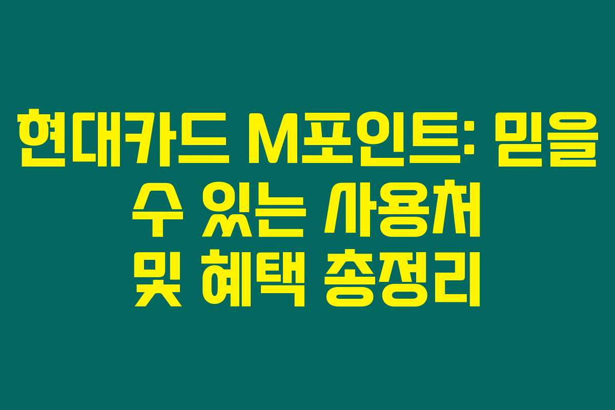 제가 직접 체크해본 바로는 현대카드 M포인트는 적립 기능과 다양한 사용처 덕분에 많은 사람들이 선호하는 카드 포인트인데요. 현대카드는 백화점 상품권, 항공 마일리지, 현대 H코인 전환 등 여러 경로로 포인트를 사용할 수 있어 일상 생활에서 유용하게 활용될 수 있답니다. 특히 M포인트의 사용환산율이 약 0.66원이지만, 특정 거래처에서는 1점=1원으로 사용할 수 있다는 점이 매력적이에요. 아래를 읽어보시면 M포인트의 실질적인 사용처와 다양한 혜택을 정리해서 확인하실 수 있습니다.