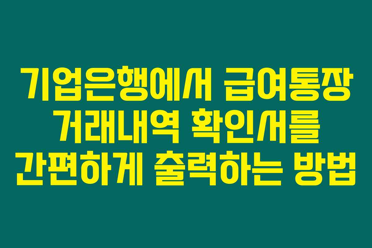 기업은행에서 급여통장 거래내역 확인서를 간편하게 출력하는 방법