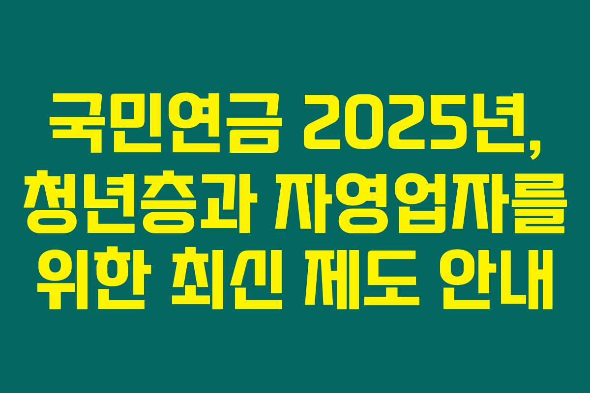 제가 직접 리서치한 바로는, 대한민국의 국민연금 제도는 많은 사람들이 일상적으로 접하지만 그 내용을 잘 이해하지 못하는 경우가 많습니다. 특히 2025년부터 시행될 새로운 제도에 대해 이해가 필요한 상황입니다. 아래를 읽어보시면 국민연금의 여러 가지 정책과 청년층 및 자영업자를 위한 혜택에 대해 자세히 알 수 있을 것입니다.