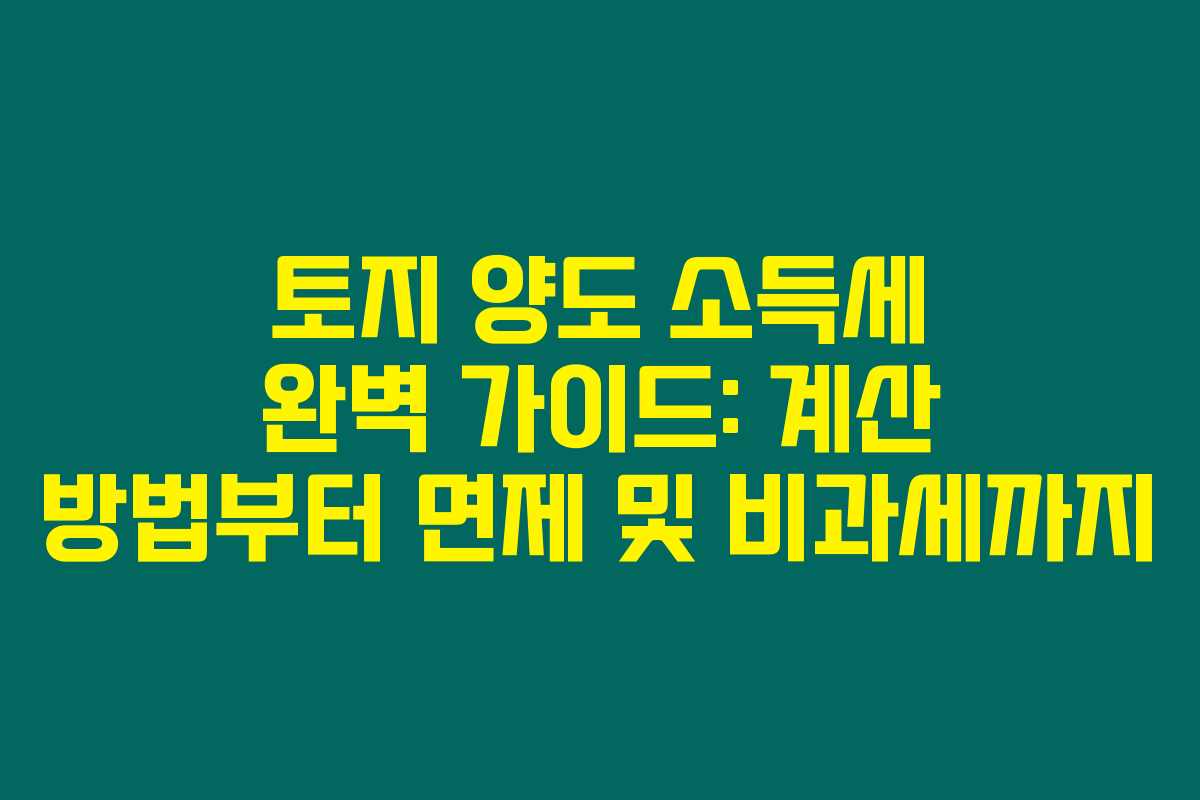 이번 글에서는 토지 양도 소득세에 대해 제가 직접 알아본 내용을 바탕으로 계산 방법, 면제 조건, 비과세 가능성 등을 종합적으로 정리하겠습니다. 많은 분들이 토지 판매 시 발생하는 소득세에 대해 어려움을 느끼고 계시는데, 아래를 읽어보시면 도움이 될 수 있을 것이라 생각해요.