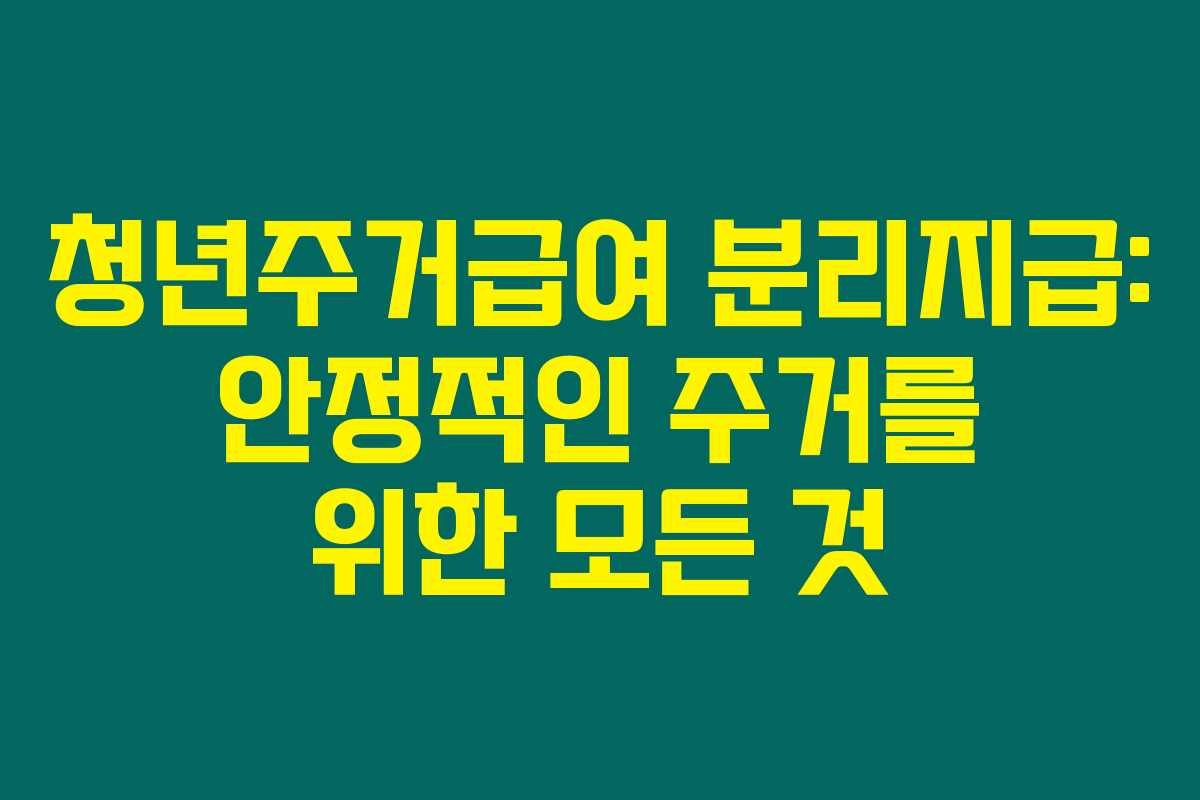 청년 주거급여 분리지급 제도는 청년들이 자립적으로 생활할 수 있도록 돕는 매우 중요한 정책이라고 생각해요. 따라서 이 제도를 적극 활용하여 더 나은 주거 환경을 누릴 수 있길 바라요.