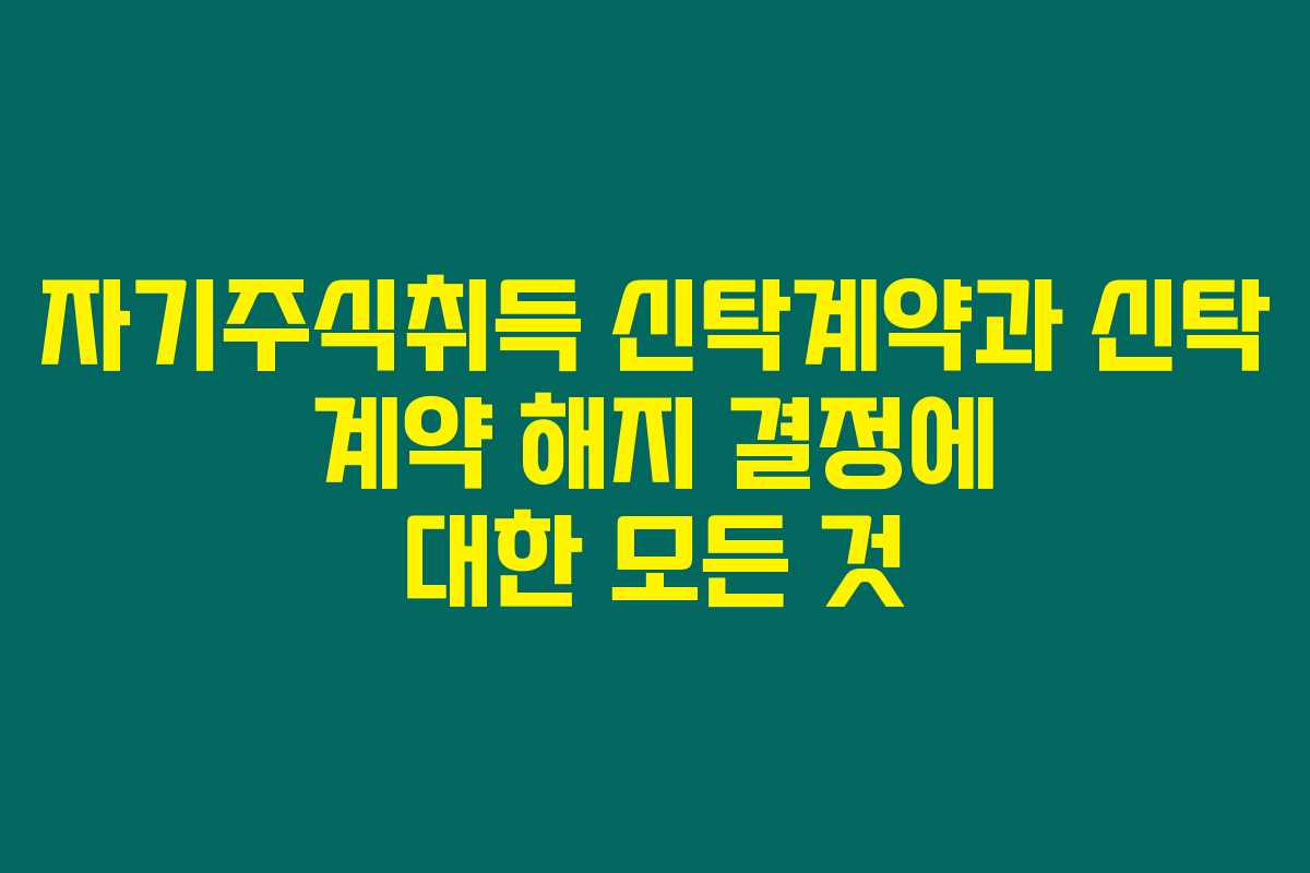 제가 직접 알아본 바로는, 자기주식취득 신탁계약과 그에 따른 신탁 계약 해지 결정은 기업의 주가와 재무 전략에 막대한 영향을 미친답니다. 이러한 결정이 무엇인지, 그 의미와 기업에 미치는 영향까지 자세히 살펴보니, 많은 분들이 투자 결정에 보다 신중할 수 있을 것 같아요. 아래를 읽어보시면 관련된 주요 포인트와 정보들을 확인하실 수 있을 거예요.