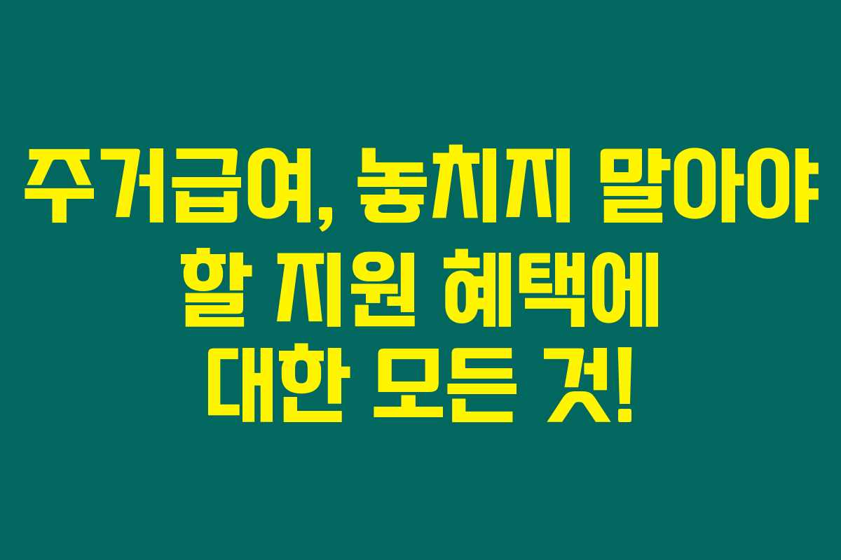 제가 직접 확인해본 결과로는, 주거급여는 저소득층과 취약계층을 위한 제도로써, 주거비 부담을 덜어주는 중요한 정책이에요. 이 글에서는 선정기준, 지원금액, 혜택 등에 대해 자세히 알려드릴 테니, 도움받을 수 있는 정보가 많은 만큼 꼭 읽어보시면 좋겠어요.