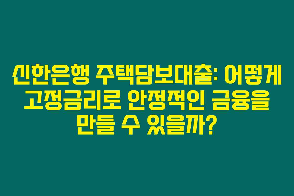 제가 직접 리서치한 바로는, 신한은행의 주택담보대출 상품은 많은 분들에게 안정적인 재정 관리를 위한 훌륭한 선택이 될 수 있습니다. 이 글에서는 신한은행의 주택담보대출에 관한 필요서류, 고정금리 혜택 등을 자세히 알아보았습니다. 아래를 읽어보시면, 대출 신청에 필요한 정보와 그에 따른 금융 계획을 세우는데 유용할 것입니다.