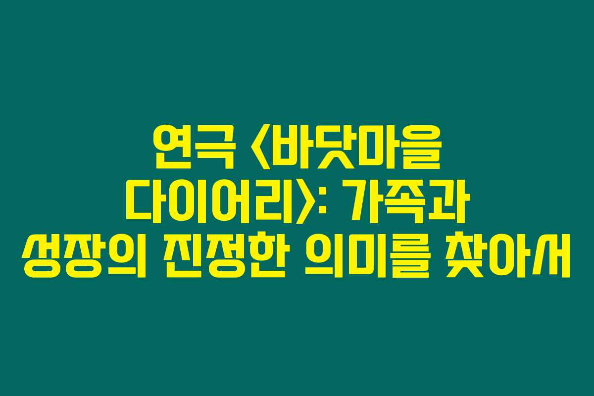 연극 <바닷마을 다이어리>는 단순한 조직 구성을 넘어, 삶의 깊이 있는 질문을 통해 가족의 의미와 서로에 대한 사랑과 이해를 이끌어내고 있습니다. 이 연극을 통해 한편의 따뜻한 이야기를 느껴보시길 강력히 추천드립니다.