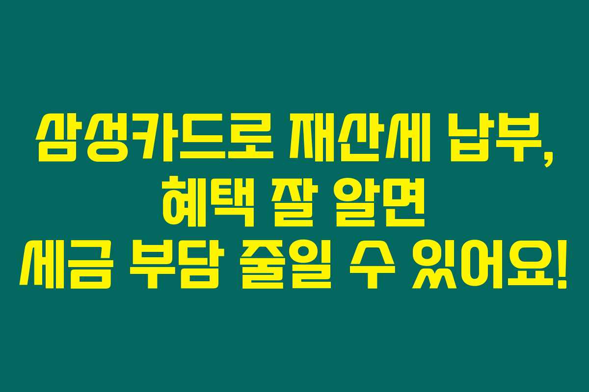 저와 함께 삼성카드의 다양한 혜택을 잘 활용해 보시면, 분명 여러분의 세금 부담도 줄어들답니다. 만약 재산세를 납부해야 한다면, 삼성카드의 혜택을 놓치지 마세요!