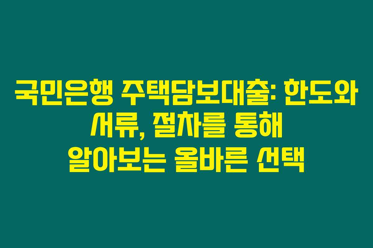 제가 직접 경험해본 결과로는, 국민은행의 주택담보대출은 많은 사람들이 집을 구매하거나 리모델링을 위해 이용하는 인기 있는 금융 상품이에요. 주택을 담보로 대출을 받는 과정에서 필요한 한도와 서류 절차를 정확히 이해하는 것이 중요하답니다. 아래를 읽어보시면 국민은행 주택담보대출에 대한 모든 것을 알게 되실 거예요.