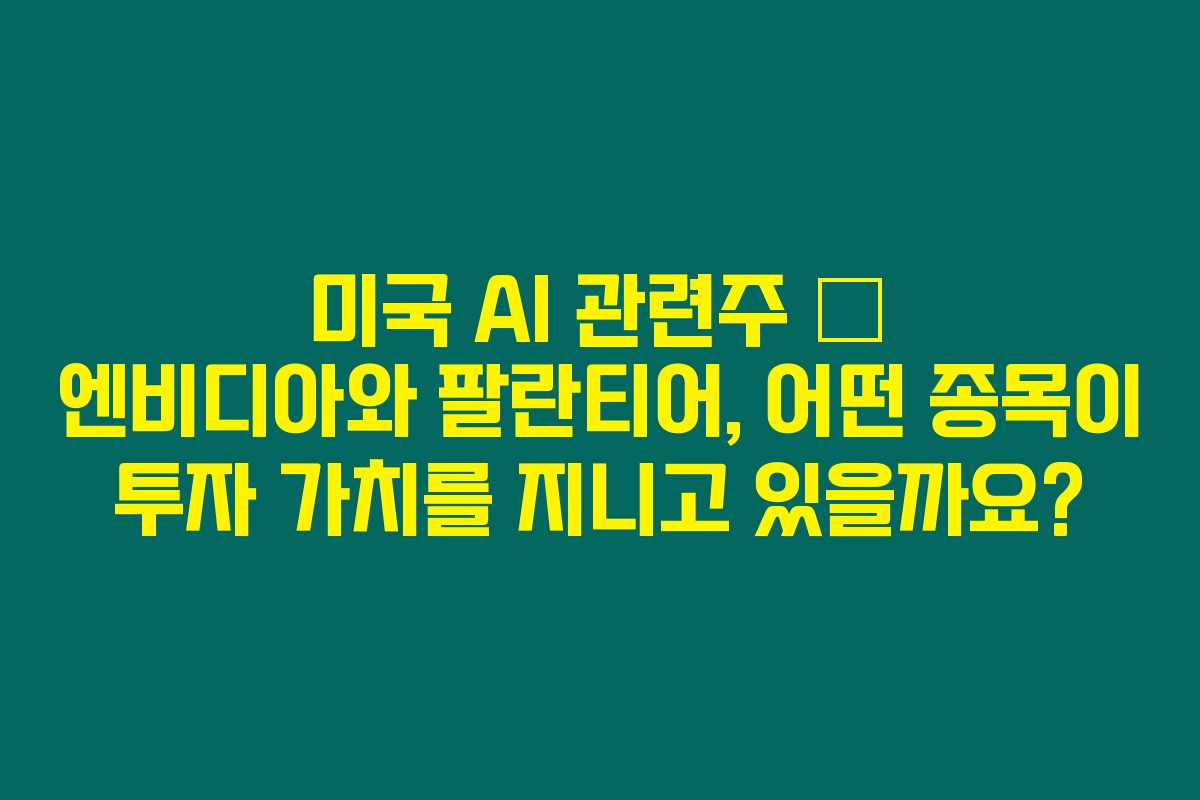 제가 직접 리서치한 바로는 최근 인공지능(AI) 기술의 발전으로 인해 관련 기업들의 주가가 눈에 띄게 상승하고 있습니다. 특히, 엔비디아(NVIDIA), 팔란티어(Palantir), 마이크로소프트(Microsoft) 등은 AI 분야에서 중요한 역할을 하고 있으며, 이들 기업의 주식은 장기적으로 안정적인 수익을 가져다줄 가능성이 큽니다. 아래를 읽어보시면 이번 글에서 다룰 AI 관련 유망주 7가지와 각 기업의 성장 가능성, 투자 포인트에 대해 자세하게 알아보실 수 있습니다.