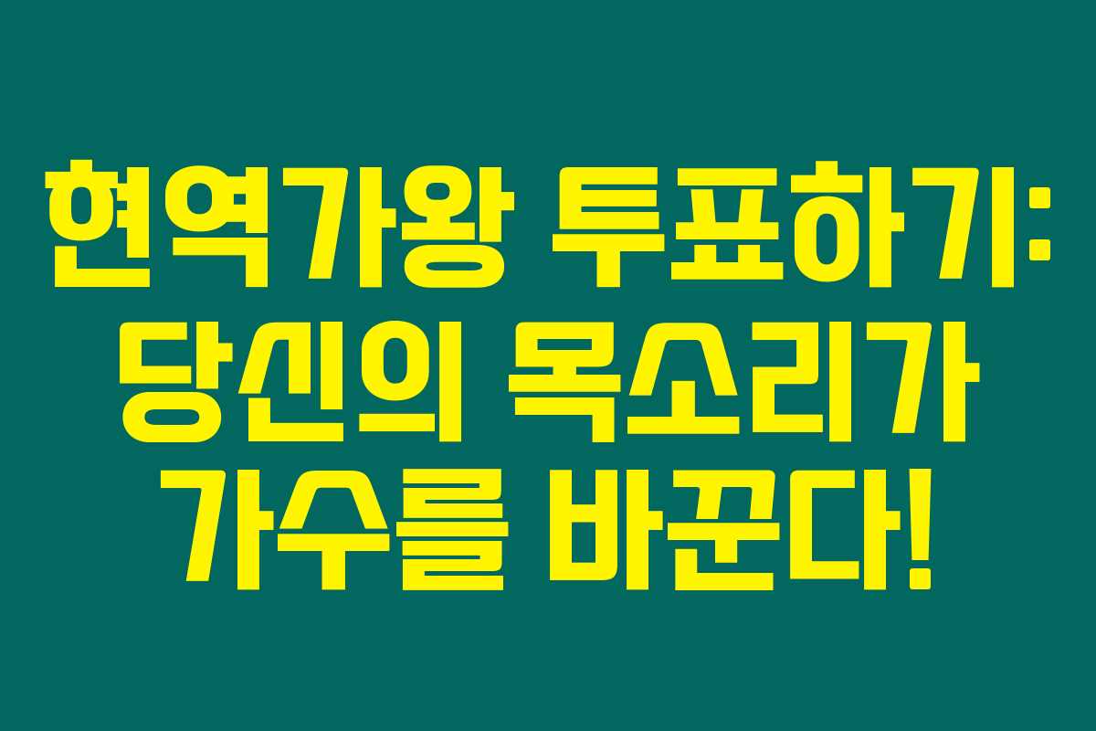 여러분, 현역가왕을 보고 계시나요? 전 국민이 함께하는 이 흥미진진한 트로트 경연에서 여러분의 응원 한 표가 세상을 바꿀 수 있습니다. 투표 방법을 아직 모르신다면 이 글을 꼭 읽어보세요. 당신의 소중한 한 표가 누군가의 꿈을 이루는 데 도움이 될 수 있습니다.