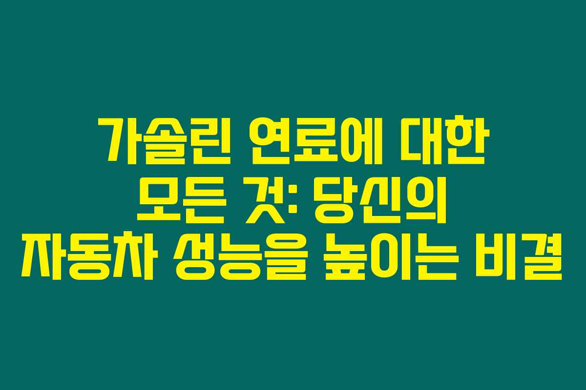 가솔린 연료에 대한 전반적인 이해가 중요하죠. 올바른 가솔린을 선택하고 사용하면 당신의 자동차 성능을 한층 더 높일 수 있어요. 이 정보가 많은 도움이 되었으면 좋겠어요! 운전 즐거운 하루 되세요~