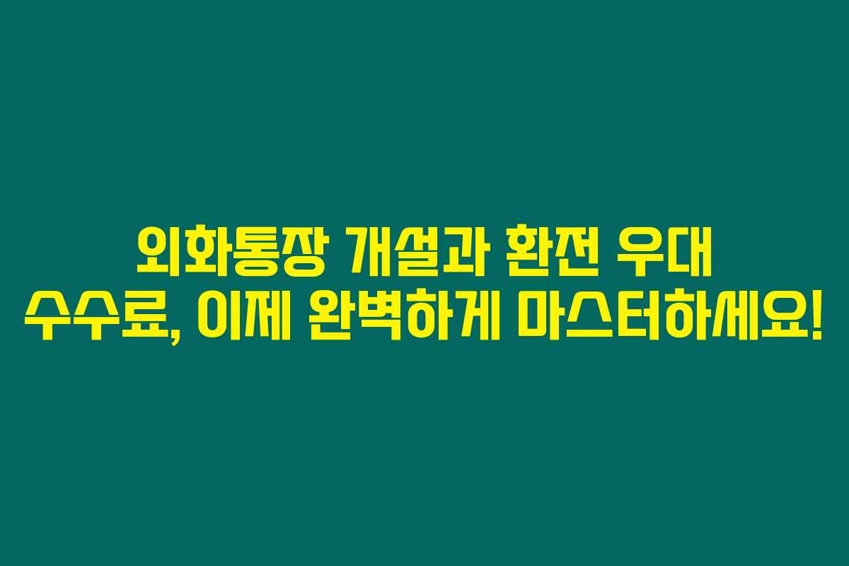 이처럼 외화통장과 환전 우대 수수료를 이해하는 것이 매우 중요해요. 환전할 때 스마트한 선택을 통해 더 많은 혜택을 누리시길 바라요!