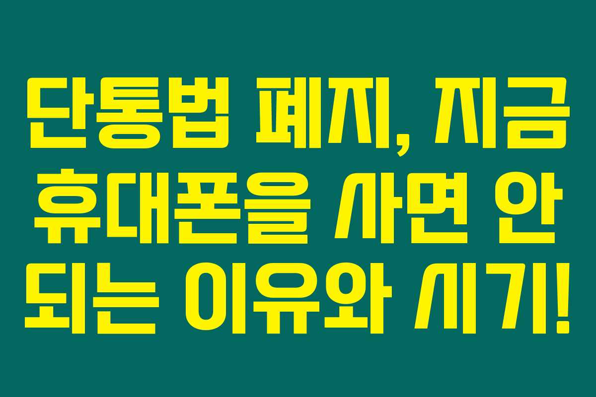 휴대폰 구매를 고려하고 있다면 단통법 폐지 소식을 놓치지 마세요. 단통법이 폐지된다면 휴대폰 가격이 많이 저렴해질 가능성이 높습니다. 하지만 지금 바로 구매하는 것보다 기다리는 것이 좋을 수도 있죠. 아래를 읽어보시면 단통법 폐지에 대한 모든 정보를 확인할 수 있습니다.