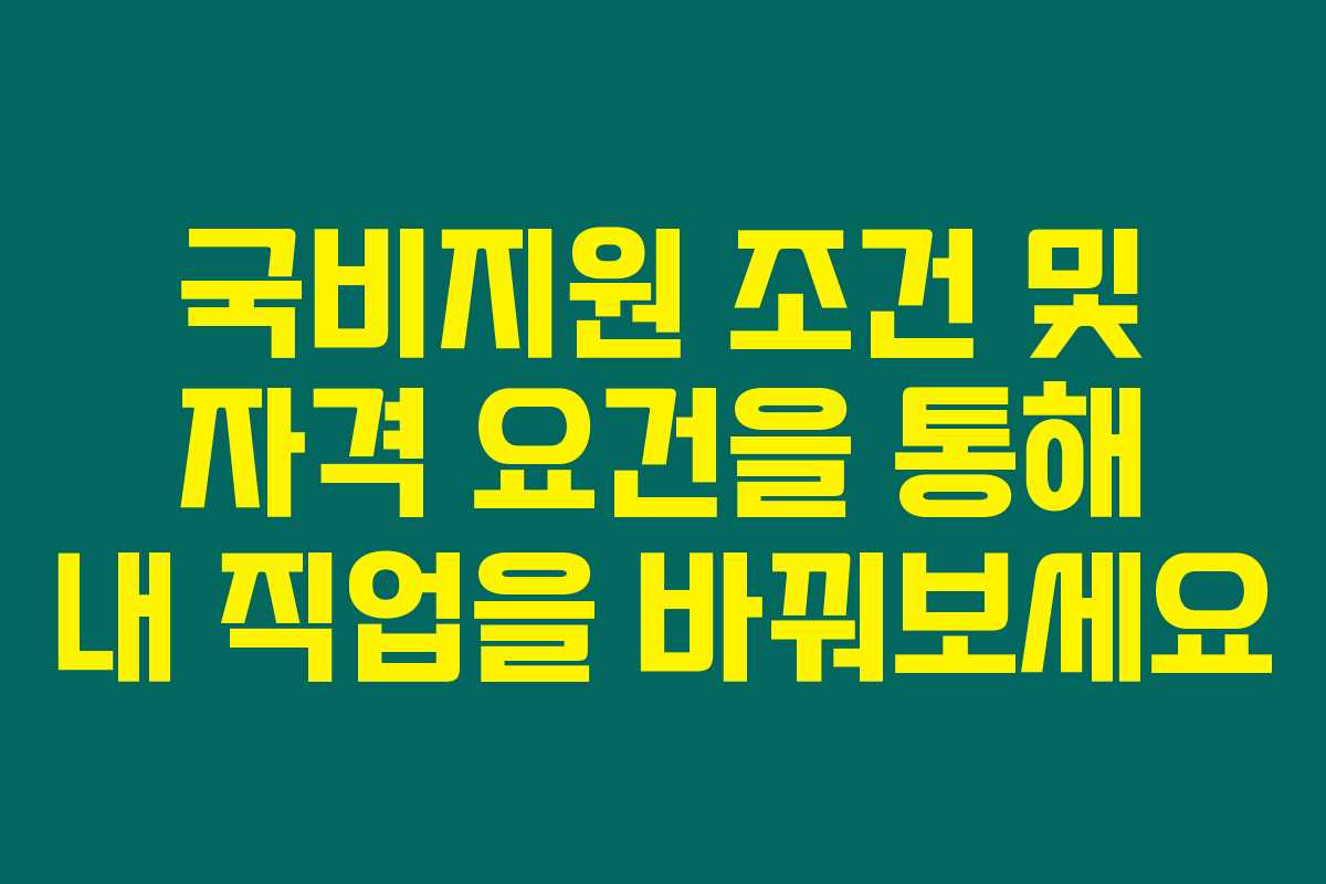 국비지원 조건을 잘 이해하지 못하고 계신가요? 만약 이런 조건을 모르고 있으면 소중한 기회를 놓칠 수 있습니다. 그러니까 내가 할 수 있는 것과 필요한 자격 요건을 확실히 알고 자신에게 맞는 과정을 신청하는 게 매우 중요해요. 아래를 읽어보시면 필요한 정보를 쏙쏙 얻을 수 있을 거예요.