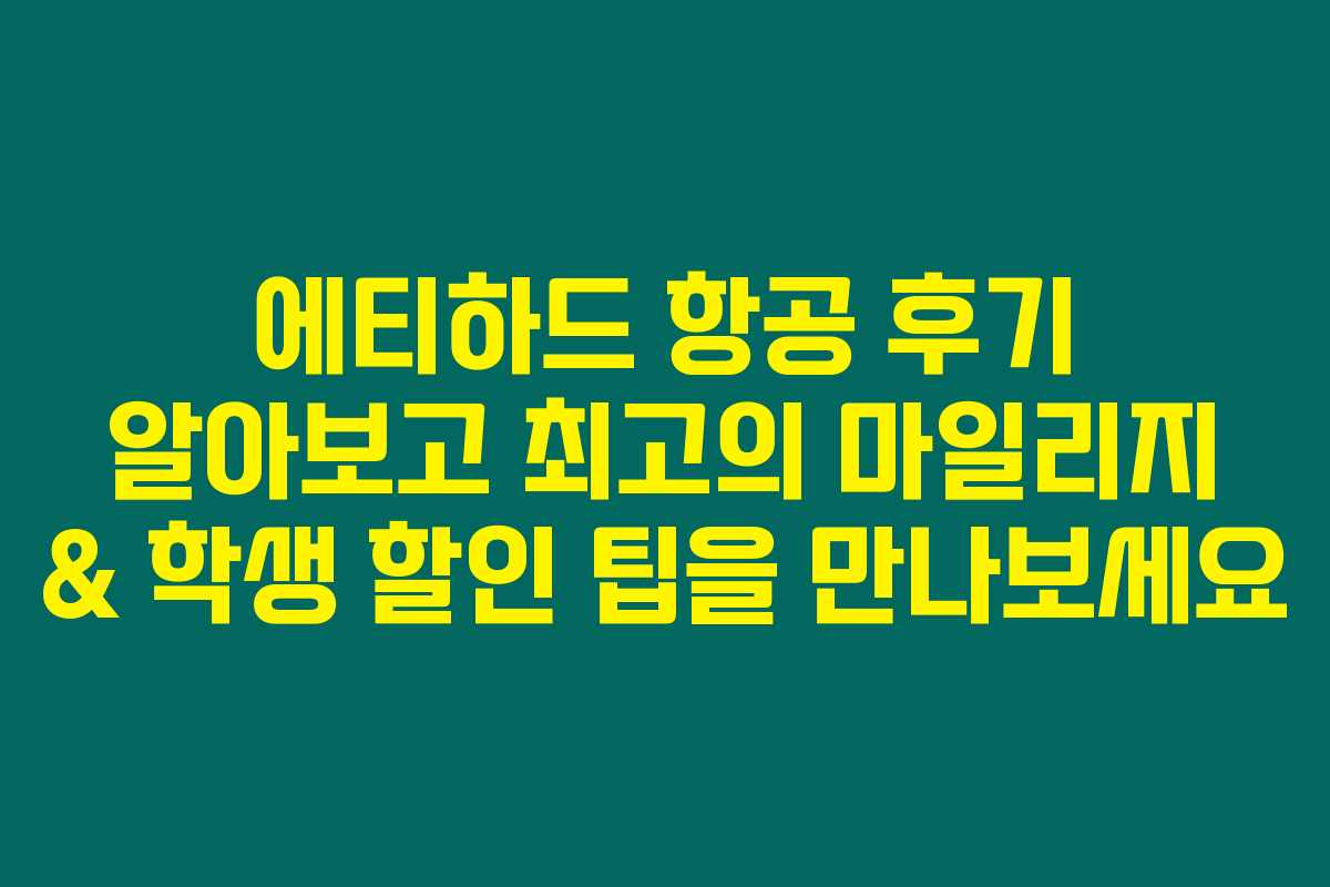 에티하드 항공은 중동의 대표적인 항공사로, 많은 이들에게 훌륭한 서비스를 제공합니다. 고객 서비스의 질, 비행 경험, 마일리지 적립, 그리고 학생 할인 혜택을 통해 본인을 위한 최고의 여행을 만끽해 보세요!