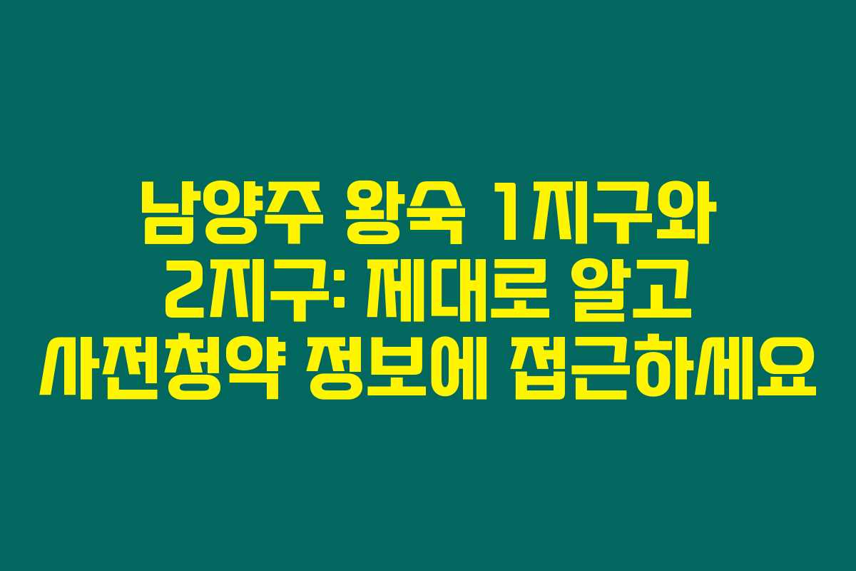 남양주 왕숙 1지구와 2지구에 대해 알고 계신가요? 이곳은 차세대 주거지로 주목받고 있으며 사전청약도 곧 진행될 예정이에요. 이 정보는 주택을 구매하고자 하는 사람들에겐 매우 중요한 사항인데요. 그러니 아래를 읽어보시면 명확한 이해를 돕고, 후회 없이 준비할 수 있는 정보를 찾을 수 있을 거예요.