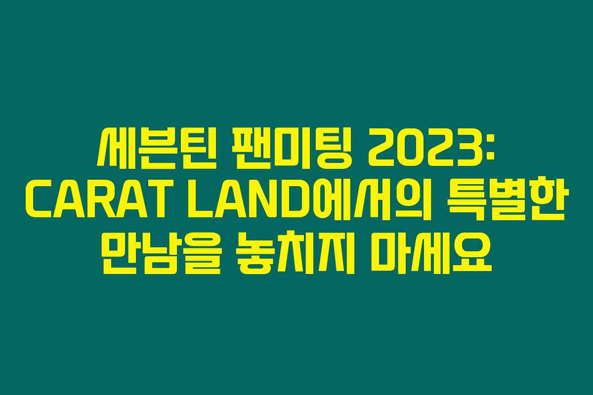 세븐틴 팬미팅을 기다리고 계신가요? 만약 세븐틴의 7번째 팬미팅에 대한 정보를 찾고 계신다면 아래를 읽어보시면 반가운 정보를 얻으실 수 있을 거예요. 이번 팬미팅은 2023년 SVT 7TH FAN MEETING ‘SEVENTEEN in CARAT LAND’로, 여러분의 기대감을 충족할 수 있는 멋진 행사랍니다!