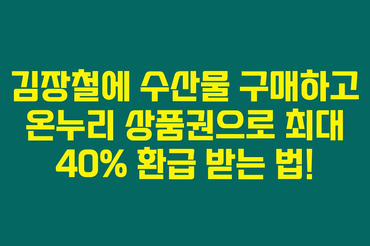 김장철이 다가오고 있죠? 김장에 필요한 신선한 수산물을 구매하고 온누리 상품권을 최대 40% 환급 받을 수 있다면 정말 좋지 않을까요? 이번 행사에 참여하는 방법과 혜택을 확인하고 알뜰 쇼핑을 즐겨보세요!