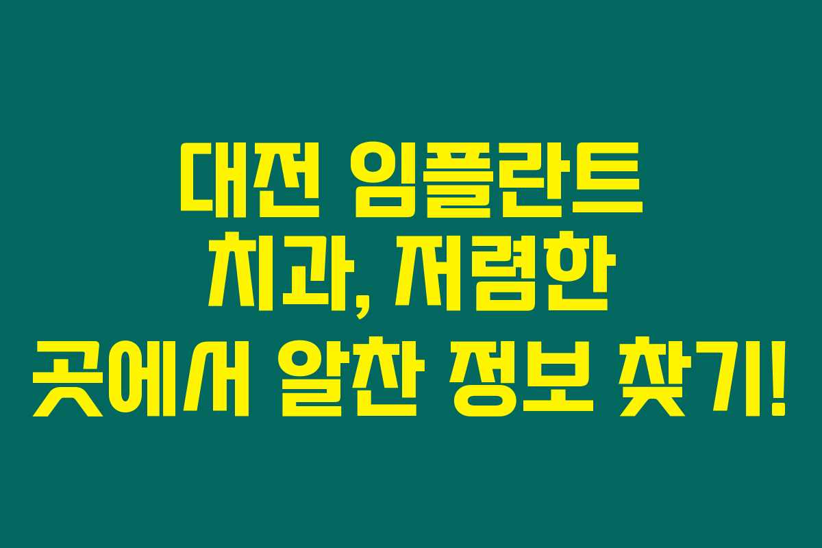 대전에서 임플란트를 잘하는 치과를 찾고 계신가요? 제가 직접 체험한 후기와 함께 저렴한 가격을 제공하는 치과 정보를 모아봤어요. 아래를 읽어보시면 대전 지역에서 믿고 치료받을 수 있는 치과를 선택하는 데 큰 도움이 될 거에요!