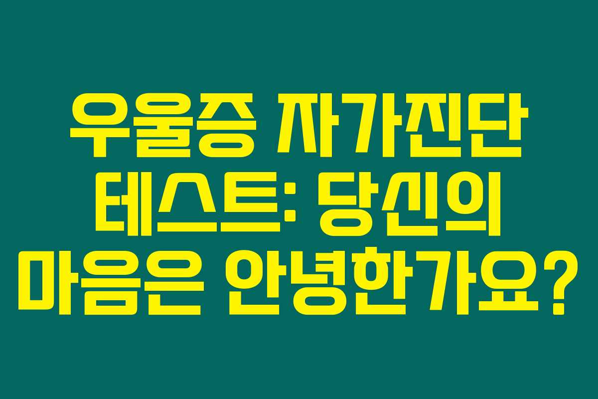 우울증 자가진단을 통해 자신의 마음을 돌아보는 시간을 가져보세요. 우리의 감정을 솔직하게 인정하고 필요한 도움을 받는 것이, 당신에게 더 나은 내일을 선사할 것입니다.