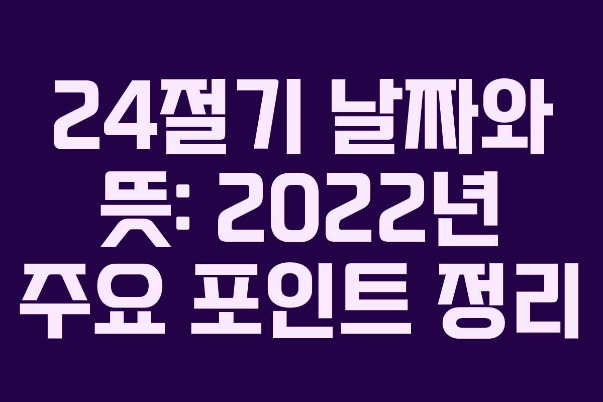다음은 2022년 봄-겨울에 해당하는 대표 절기와 날짜, 의미를 정리한 요약입니다. 연도 경계에 따라 일부 날짜가 이월되기도 했습니다.