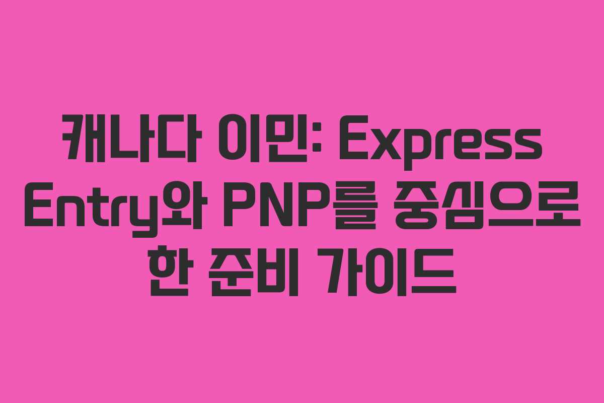 1) 캐나다 이민의 큰 구조: Express Entry와 PNP의 차이