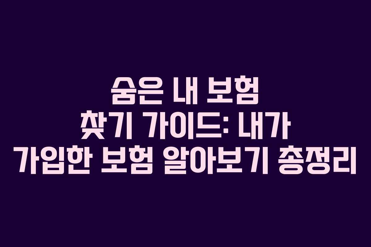 키워드: 숨은 내 보험 찾기, 보험 조회, 내보험 알아보기, 보험계약 내역, 미청구보험금, 휴면보험금, 생명보험협회, 계약자 피보험자, 증권번호, 보험회사명, 계약상태,