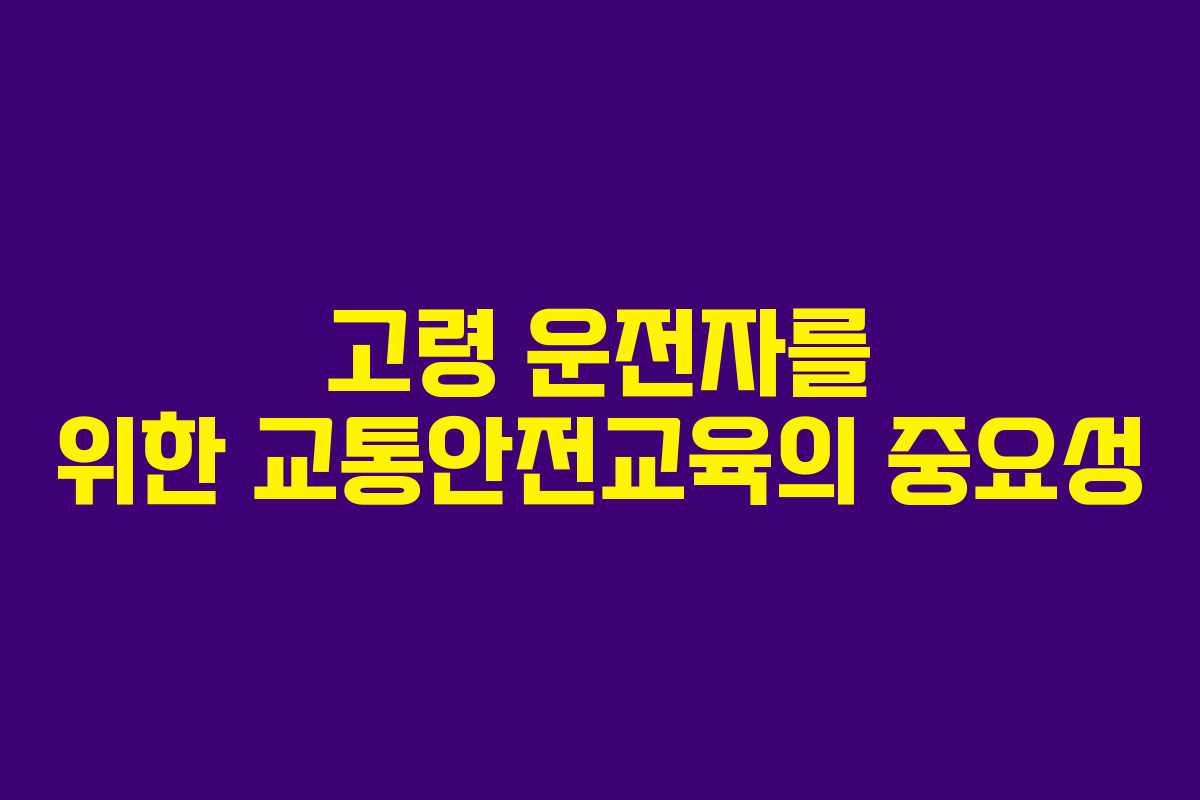 고령 운전자는 교통사고의 위험이 상대적으로 높습니다. 따라서 이 교육은 안전 운전 습관을 기르고, 사고를 예방하는 데 도움이 됩니다.