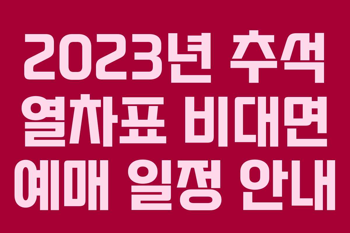 추석이 가까워지면서 고향 방문을 계획하는 분들이 많아지고 있습니다. 2023년 추석은 9월 29일 금요일로, 이에 따라 열차표 예매를 미리 준비해야 합니다. 이번 글에서는 2023년 추석 열차표 예매 일정과 방법에 대해 상세히 안내하겠습니다.