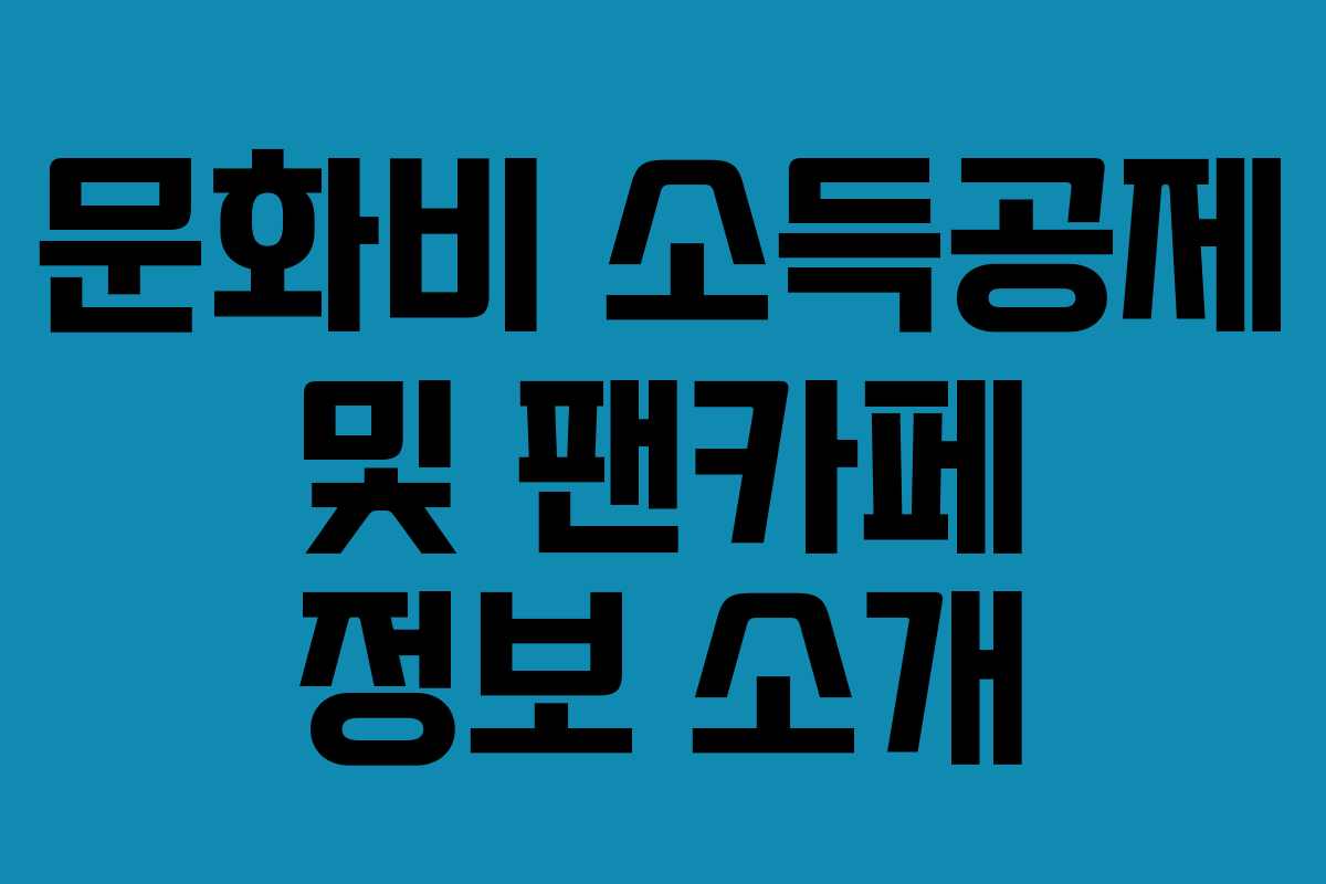문화비 소득공제는 직장인, 프리랜서, 자영업자에게 유익한 제도로, 문화생활을 즐기면서 세금 공제 혜택을 받을 수 있는 방법입니다. 본 글에서는 문화비 소득공제의 개념과 팬카페에 대한 정보도 함께 소개하겠습니다.