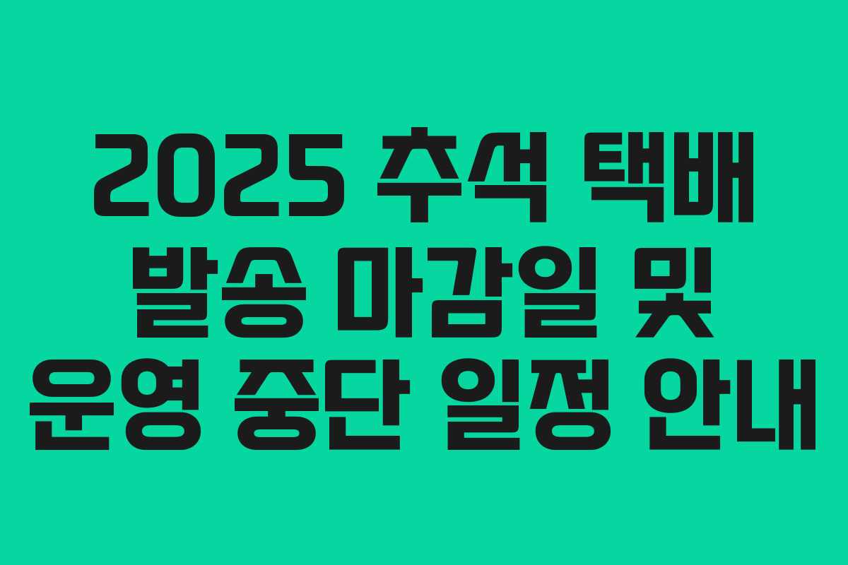2025년 추석 연휴 기간 동안의 택배사의 운영 중단 및 발송 마감일에 대한 정보는 온라인 판매자와 선물 발송 소비자에게 매우 중요합니다. 이 내용을 바탕으로 사전 계획을 세우는 것이 필요합니다.