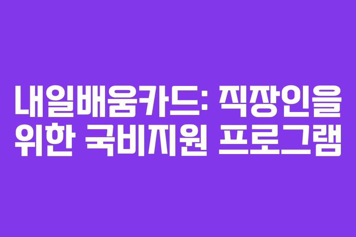 내일배움카드는 직장인들에게 진로 개발과 역량 강화를 위한 훌륭한 기회를 제공합니다. 이를 통해 새로운 기술을 배우고, 경력을 쌓으며, 미래를 준비할 수 있습니다.