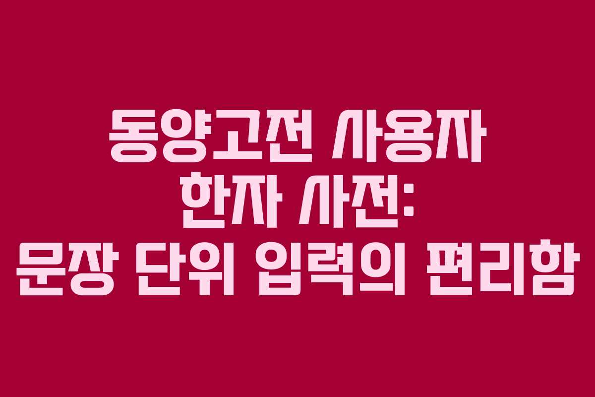 동양고전의 한자를 효율적으로 활용할 수 있는 사용자 한자 사전이 무료로 제공됩니다. 이 사전은 ‘아래아 한글’ 프로그램을 통해 문장 단위로 한자를 입력할 수 있는 기능을 제공합니다.