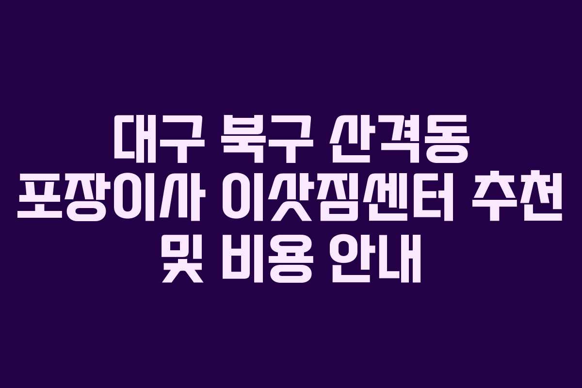 대구 북구 산격동에서 포장이사를 고려하고 있다면, 이 글은 필수적으로 참고할 만한 내용입니다. 이 지역의 이삿짐센터 추천과 함께 비용에 대한 정보를 제공합니다. 이사 비용, 추천 업체, 주의사항 등을 체계적으로 정리하여 이사 준비에 도움이 되기를 바랍니다.