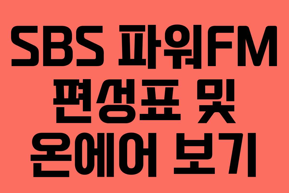 SBS 파워FM은 최근 많은 청취자에게 사랑받고 있는 라디오 채널입니다. 이번 글에서는 SBS 파워FM의 편성표와 온에어 시청 방법을 안내드립니다. 라디오를 통해 즐거운 시간을 보내는 방법을 알아보세요.