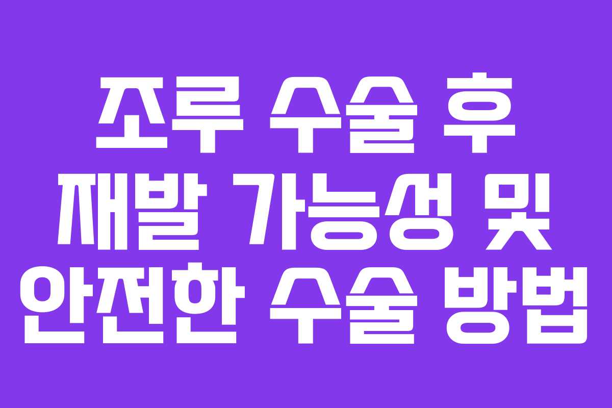 조루 수술은 비교적 안전한 수술이지만, 모든 수술에는 위험이 따릅니다. 수술 전 전문의와 충분한 상담을 통해 자신의 상황을 고려해야 합니다.