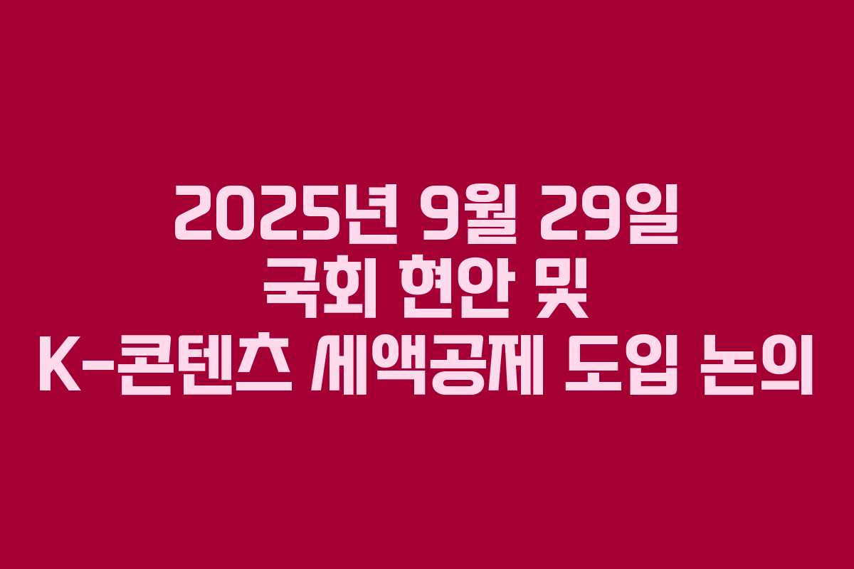 2025년 9월 29일, 국회에서는 여러 중요한 현안과 정책들이 진행되고 있으며, 특히 K-콘텐츠의 제작비 세액공제 도입을 위한 토론회가 예정되어 있습니다. 이 글에서는 국회에서의 주요 이슈와 K-콘텐츠 관련 논의에 대해 살펴보겠습니다.