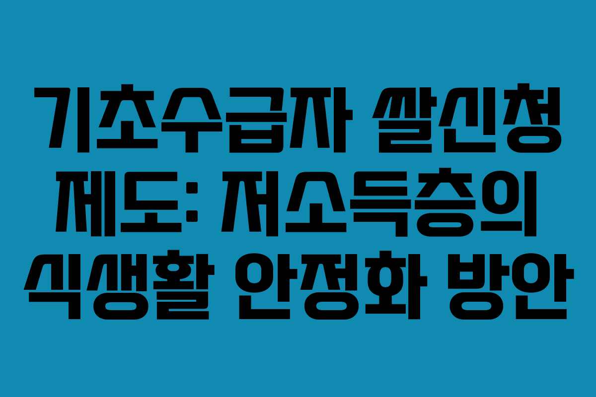 저소득층의 식생활 안정을 위해 정부에서 운영하는 기초수급자 쌀신청 제도는 생계비 부담을 줄이고 안정적인 식량 확보를 도와줍니다. 이 제도는 기초생활수급자와 법정 차상위계층을 대상으로 하며, 매달 신청을 통해 정부양곡을 저렴한 가격에 구입할 수 있는 기회를 제공합니다.