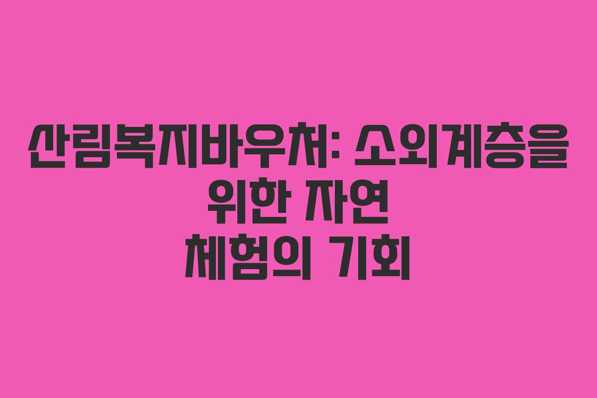 산림복지바우처는 소외계층이 자연을 경험할 수 있도록 돕는 중요한 제도입니다. 지금 바로 신청하여 혜택을 누릴 수 있는 기회를 잡아보세요.