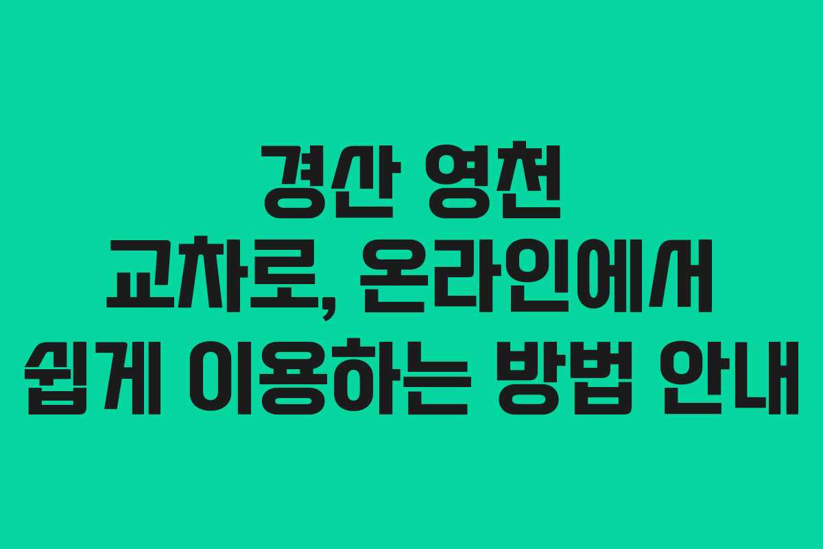 경산 영천 교차로를 효과적으로 이용하기 위한 절차는 아래와 같다.