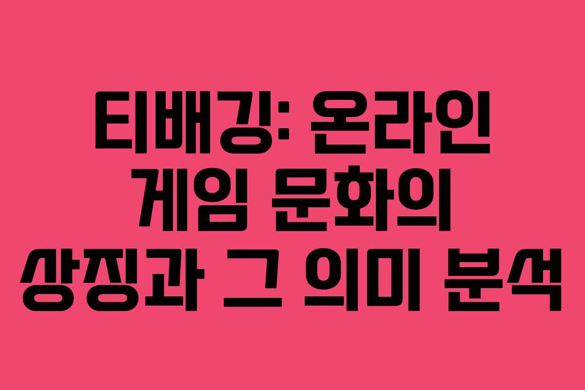 티배깅은 최근 몇 년간 온라인 게임과 인터넷 문화에서 빈번하게 등장하는 용어이다. 이 용어는 특정 행동을 지칭하며, 그 유래와 문화적 의미를 살펴보는 것은 현대 게이머들에게 중요한 주제가 되었다. 이번 글에서는 티배깅의 정의부터 시작해 그 유래와 문화적 맥락까지 심도 있게 분석해 보겠다.