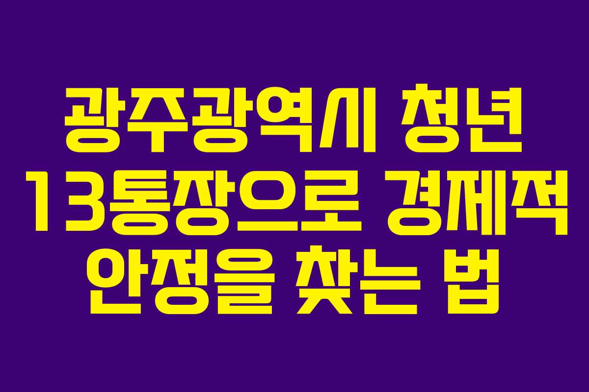 청년 13통장은 광주광역시 청년들에게 경제적 자립을 위한 중요한 첫걸음입니다. 이 프로그램을 통해 매달 저축하고, 정부의 지원을 받으며 경제적 목표를 달성할 수 있습니다. 지금 바로 신청하여 보다 나은 미래를 만들어 나가기 바랍니다.