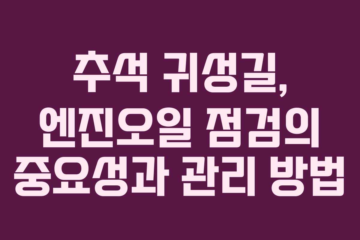 이번 추석 명절에는 차량 점검을 통해 안전한 귀성길을 준비하는 것이 중요하다. 특히 엔진오일 상태를 점검하여 차량의 성능과 안전성을 확보하는 것이 필수적이다. 정기적인 점검과 예방 정비를 통해 안전한 여행을 즐길 수 있기를 바란다.