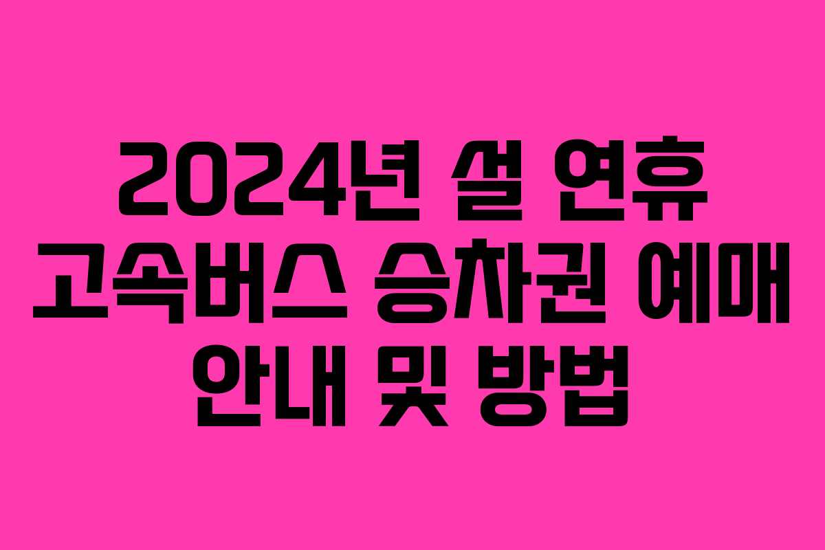 2024년 설 연휴를 준비하면서 고속버스 승차권 예매를 통해 원활한 여행을 계획할 수 있다. 예매가 시작되는 날짜를 기억하고, 미리 준비하여 편리한 여행을 즐길 수 있도록 하자.