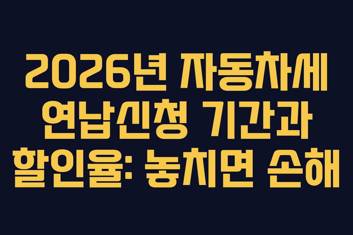 2026년 자동차세 연납신청은 1월, 3월, 6월, 9월에 가능하지만, 1월이 가장 중요합니다. 1월에 신청하면 2월부터 12월까지의 세금에 대해 최대 할인율을 적용받을 수 있습니다. 신청 월에 따라 할인율이 점차 줄어들기 때문에, 가능한 한 1월 중에 신청하는 것이 좋습니다.