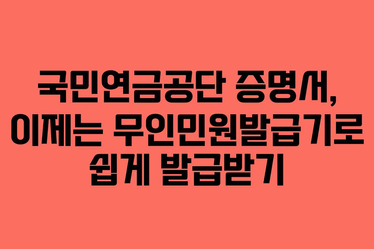 이제는 무인민원발급기를 통해 국민연금공단 증명서를 발급받는 것이 훨씬 간편해졌다. 가까운 장소에 설치된 발급기를 활용하여 필요한 증명서를 즉시 발급받아 보시기 바란다.