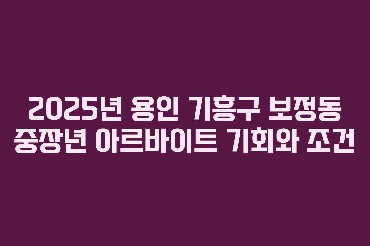 2025년 기준으로 용인 기흥구 보정동에서 제공되는 중장년 아르바이트에 지금 바로 지원해 보시기 바랍니다. 이는 여러분의 삶에 새로운 활력을 가져올 수 있는 기회입니다.